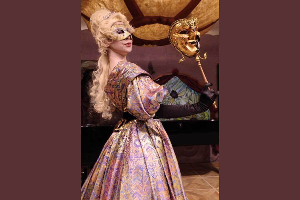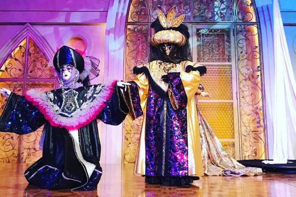 ヴェネチアのカーニヴァルから抜け出してきたような華麗な衣装と仮面のデュオ。インパクトとインスタ映えはダントツです。
