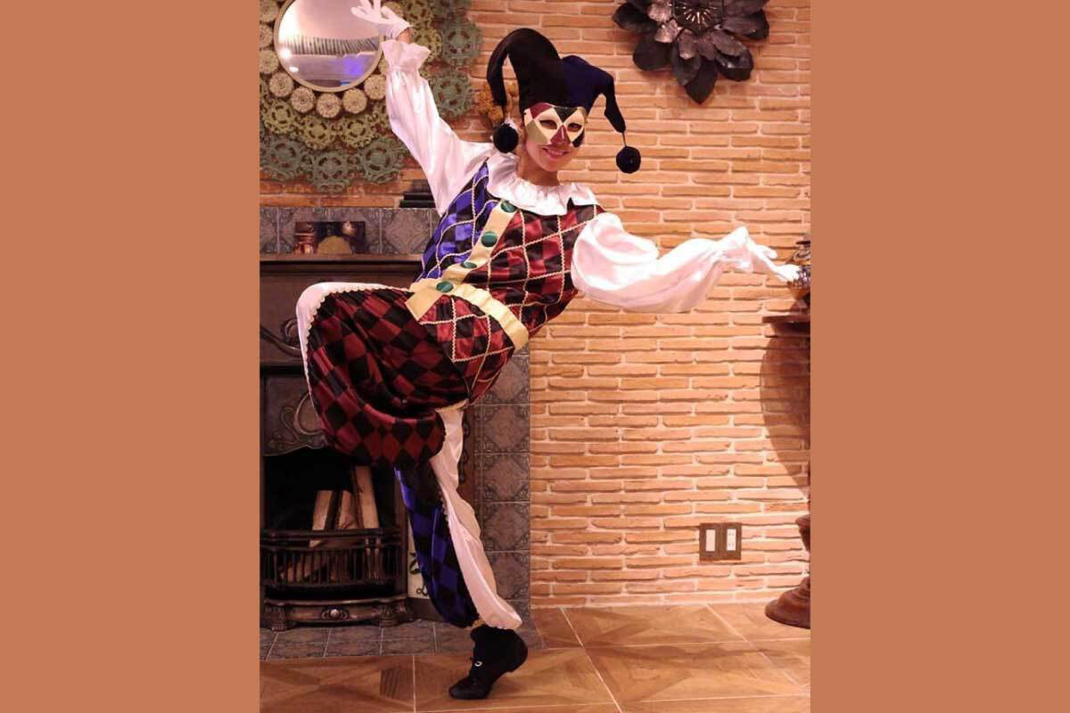 ダイヤ柄の衣装、イタズラ好き、トリックスター的な道化師。
