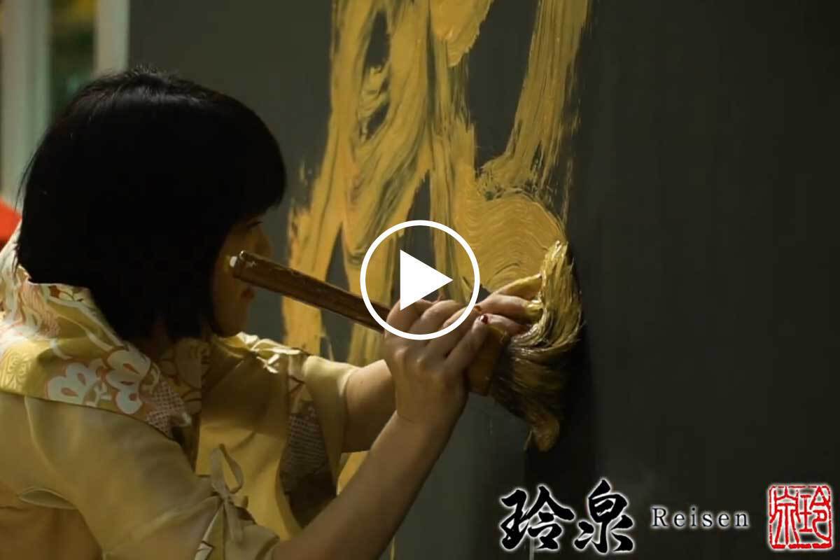 お正月や特別なイベントのオープニングパフォーマンス、大切なお客様をお迎えしてのパーティーイベント、ミュージシャンのライブなどで迫力ある筆運びが大変好評を博しております。